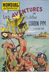 remarques: | album broché, 48 pages, 50% couleur 50% noir&blanc, prix 1.- NF d'après Edgar Allan Poe 1813 - 1849 qui mourra de delirium tremens à l'âge de 36 ans, auteur de thèmes du fantastique et de l'épouvante dont les histoires extraordinaires, illustrations par Yves Groux deux jeunes hommes, Gordon Pym et son ami Auguste Barnard se retrouvent abandonnés sur un navire avec un matelot, rescapé d'une rixe entre les membres de l'équipage, tous les trois dériveront vers l'Antarctique pour arriver à une île inconnue au climat très favorable mais où ils auront affaire à des sauvages dangereux, ils réussiront finalement par s'enfuir à l'aide d'une pirogue et seront recueillis par une baleinière >> des aventures extraordinaires mais rien de très formidable ni pour le scénario ni pour le graphisme n.b. les aventures d'Arthur Gordon Pym (the narrative of Arthur Gordon Pym of Nantucket) est le titre de l'unique roman achevé par Edgar Allan Poe, publié en 1838 aux États-Unis et en Angleterre, présenté par ses éditeurs comme le récit d'un authentique voyage de découverte aux confins inexplorés de l'océan Antarctique, l'ouvrage a été éreinté par la critique anglo-américaine lors de sa parution et quasiment renié plus tard par son auteur, Baudelaire lui-même exprima initialement des réserves face à ce roman d'aventures exubérant, non dénué d'invraisemblances et de défauts de construction, qui par la suite impressionna profondément des lecteurs tels que Jorge Luis Borges, Jules Verne, Howard, Phillips, Lovecraft ou encore Gaston Bachelard. l'odyssée énigmatique d'Arthur G. Pym, le mystère qui plane autour de sa disparition au large du pôle sud, ainsi que la nature de la "silhouette voilée" qui clôt le récit ont par ailleurs donné lieu aux interprétations les plus diverses et les plus contradictoires. |