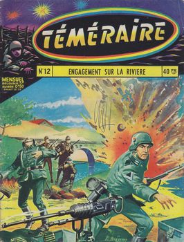 remarques: | numéro 12 de septembre 1959 - Tomic, engagement sur la rivière le dessin est repris par Pierre Brisson qui ne produit toutefois qu'un graphisme médiocre, une carrière de dessinateur impressionnante (voir plus bas), mais pour la série Tomic de Téméraire, son dessin n'est pas impressionnant Information Pierre Brisson alias Pierre Le Goff est un dessinateur français né le 21 février 1932, ce dessinateur au trait classique mais caractéristique à base de hachures, qui signe également Pol Greffiere, débute en 1949 à la SNPI/SFPI, on retrouve ses bandes dans Zorro (Ouapouk roi du pôle, les tuniques bleues et Bob Monty entre 1950 et 1952), dans Le supplément de Zorro (1951-53), Clan (Red Sheriff, 1951), Héros Magazine (1951-52), Zorro magazine (1952), Red Shérif (1952, couvertures et série) ou Bimbo, nouvelle série (Lucky chien loup en 1956-59), à partir de 1953, pour la SEG, il produit divers récits dans Sans Peur ou à travers le monde comme Bob Flash (n°80 à 111), poursuivi dans le Trident, Visage pâle, coeur rouge (n°80), chasseur d’araignées au n°76 (1953-54), la forêt des géants verts (n°92) ou une expédition en 1958 (texte de Pierre Limat) et dans le petit format Yphon (écumeurs des mers en 1965), pour Spirou, il dessine "les belles histoires de l’oncle Paul" entre 1954 et 1961 et on le retrouve au sommaire de Caméra 34 (Bob Mallard,1955) ou de Pistolin (Garnelin avec Jean-Michel Charlier en 1955), dans "l’Avant Garde", il met en images des nouvelles du romancier Ray Bradbury de 1955 à 1959, il signe des bandes dans Hurrah! puis l'Intrépide-Hurrah!, et il réalise Tomic dans Téméraire (ainsi que des couvertures) aux éditions Artima (1957-61), des illustrations de nouvelles signées Lécureux et de nombreux récits complets dans Vaillant de 1958 à 1963 (citons pêle-mêle le 4ème écrou, Jean Croquard, brigand de fortune, l’énigme du Baltimore, les deux enfants et la mangouste, lune... station X!), d’autre part, il participe à Lisette à la fin des années 50, à la Semaine de Suzette en 1959 et succède à Lucien Nortier sur le western Captain James dans Totem (1re série) des éditions Aventures & Voyages en 1960-61 on le retrouve ensuite sur Dan Panther, Gavroche et l’affaire du courrier de Lyon entre 1961 et 1963, il collabore également à Télé-Jeunes, Francs-Jeux entre 1961 et 1966 et il illustre des bandes quotidiennes dans Paris-Jour (1962-65), Libération (1962-64) et pour Opera Mundi comme Coplan d’après Paul Kenny sous le pseudonyme de Pol Greffière réalisant environ 3000 strips dans le Parisien Libéré (1964-80), Rouletabille dans le républicain Lorrain (1966-70) ou Gens de la noce (1966) et Nimbus de 1981 à 1991, entre-temps, il a adapté et collaboré à nouveau pour les éditions Vaillant dans "l’Humanité" (1965) et Vaillant (1965-69) avec divers récits et les séries Jacques Flash ou Nasdine Hodja (1967-69), par exemple, puis diverses revues comme Pilote (1967-70: kidnappons le général (dans le no 390), Fantômas (1968), Amis-Coop (des récits complets entre 1972 et 82), de la SEPP en 1975 (Spartacus dans services secrets no 65), Tintin avec des récits historiques comme Sophie Rostopochine (1976-77) ou Noëls insolites (n°67 en 1976), Télé Junior avec l'homme qui valait trois milliards (2 albums en 1979-80), Prince Noir (1 album en 1979), Chapeau melon et bottes de cuir (1 album en 1980), les brigades du Tigre (1 album en 1979), Matt et Jenny avec Sacha (2 albums en 1981) etc. et le Journal de Mickey (1981-92), + quelques récits complets publiés dans l'Intrépide-Hurrah |