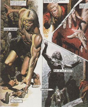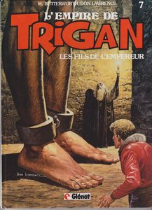 remarques: | 3 épisodes pour cet album de 64 pages (au lieu de 48) a) les fils de l'empereur naissance des triplés de Trigo, mais pour le salut de l'empire, il ne peut y avoir qu'un héritier, Trigo charge Salvia de se séparer des deux autres bébés qui sont confiés à des marchands ambulants, l'héritier Argo le téméraire devient lentement un homme alors qu'un envahisseur extraterrestre menace la planète Elekton >> p. 7 la planche ne remplit que la moitié de la page (?) Thringa, l'extraterrestre, devient le précepteur d'Argo et prend contrôle du prince en lui ordonnant de se débarrasser de Trigo et en menant l'empire à une guerre contre Hericon, après la défaite d'Hericon, le roi Kassar est condamné à mort, mais Janno découvre le complot et Salvia réussit à récupérer les deux autres fils de Trigo (Rilla et Nikko) >> p. 25 une rencontre amicale dans les airs entre Janno et Roffa Janno réussit à remplacer Argo par Rilla, mais celui-ci meurt dans une échaffourée et c'est Nikko qui prend sa place après qu'Argo et Thringa sont abattus lors d'un duel aérien, et Trigo qu'on croyait mort revient vivant, sauvé par les braves guerriers de Daveli, Trigo récupère son trône et offre le trône d'Hericon à Nikko b) la race des géants Janno découvre les ruines d'un temple gigantesque et rencontre un géant sous l'emprise d'un sorcier, Janno tombe à son tour sous l'emprise du sorcier, mais le géant (un genre de King Kong) réussit à s'échapper et à semer la panique dans Trigopolis débarrassé du sorcier, Janno réussit grâce à la formule du sorcier à dompter le géant et à en faire son allié >> p. 30 l'affreux homme-singe géant c) mission à Héricon lors du voyage vers Hericon, Nikko et Janno sont capturés par le comte Otho, un châtelain chasseur d'hommes qui organise une chasse à l'homme, mais grâce à la ruse de Janno, nos deux compères réussiront à s'échapper >> p. 40/41 la partie de chasse sur Janno et Nikko toutefois un nouveau péril les guette à la cour d'Hericon où le régent Nacha a pris le pouvoir aidé par le magicien Zogg, Nikko est transformé en vieillard et devient l'instrument de Nacha le complot échoue toutefois grâce à la subtilité du savant Péric qui réussit à transformer la formule de Zogg en potion de jeunesse, Nikko retrouve son aspect normal et Nacha + Zogg sont transformés en petits chérubins >> p. 51 un jeune prince Nikko transformé en vieil homme >> p. 58+60 par deux fois, Péric doit tromper ses adversaires en ne voulant pas qu'on doute de sa fidélité >> p. 63 bébé où est passé ton pépé? >> toujours un bon graphisme et un récit original pour le premier épisode, mais les deux derniers sont quelque peu comiques et enfantins malgré un aspect amusant |