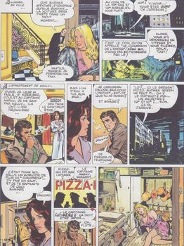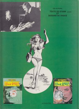 remarques: | les aventures policières de l'attrayante et pulpeuse Kelly la rousse comme "contact" sur le genre Juliette de mon coeur, accompagnée de ses trois joyeux lurons: Spats Cavendish, Bébé et Petit Jimmy n.b. contact = intermédiaire entre lésé et léseur et aussi entremetteur entre acheteur et vendeur (négociateur) >> un premier volume tout à fait intéressant tant pour le scénario que pour le graphisme Information Kelly Green est un personnage et une série de bande dessinée créée en 1981 par le dessinateur Leonard Starr et le scénariste Stan Drake; prépubliée dans Pilote, la série paraît ensuite en cinq volumes chez Dargaud Kelly Green est une jolie rousse, épouse de Dan, un policier d'une force spéciale qui est tragiquement tué, elle accuse les supérieurs hiérarchiques de son mari de l'avoir envoyé à une mort certaine, pour approfondir son enquête, elle devient un contact entre la pègre et ses commanditaires Kelly Green, jeune, rousse, est l'héroïne de la série, veuve, elle enquête sur la mort de son mari, Jimmy, Bébé et Spats Cavendish sont les adjoints pittoresques et très peu conventionnels de Kelly Green fait rare, c'est un éditeur européen, Dargaud, qui a commandé cette série à des auteurs américains de tout premier plan, ce sont en l'occurrence: Stan Drake, le dessinateur qui a créé Juliette de mon cœur et Leonard Starr, le scénariste auteur de Mary Perkins la série Kelly Green est prépubliée à partir de 1981 par Pilote et ensuite par Charlie Mensuel, Dargaud la publie ensuite en albums à partir de 1982 |