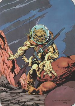 remarques: | 80 pages de horror comics en courts épisodes 1/ mutant en emporte le vent (1969) des mutants rescapés de la dernière guerre et réfugiés dans le centre de la terre reviennent à la surface, ils y découvrent des femelles humaines, normales de corps, mais pauvres d'esprit qui se révèlent par la suite être des crapauds mutants >> p. 6 un sérum contenant un facteur génétique qui rendra les enfants semblables aux grands parents et non aux parents 2/ Nosferatu (1972) tiré du film de même nom, la visite de l'agent Hunter au comte Orlock de Transylvanie qui amènera par la suite la peste en Europe occidentale 3/ un en trop (1970) ** les déboires de l'homme à trois bras qui doit mourir, car il n'y a pas de place sur ce monde pour les monstres 4/ dyspnée = difficulté de la respiration (1969) les mésaventures d'un groupe d'explorateurs de l'espace sur Venus et leur lutte pour la survie, car ils n'ont pas assez d'oxygène, mais en fait l'air de Venus était respirable 5/ et Dieu créa l'infâme (1970) ** les chemins de l'horreur par le crapaud maléfique créé par une sorcière pour se venger de son monde >> p. 25 le fils de l'oeil de salamandre 6/ le nourrir (1969) ** la nourriture du mangeur d'hommes >> p. 32 le mangeur d'hommes 7/ le martien (1974) illustration d'une page ** 8/ purple pictography: the monster's thing = son truc en plomb (1971) = la pute, le monstre Frankenstein et la pièce manquante 9/ le talent latent de Munchmo (Munchmo's coming) 1971 le pervers du village et le dragon sadique pédé 10/ Titus et Pubius (1972) exécutés par le bourreau coupe-couilles 11/ pompalo (water job) 1971 lubricité sous-marine avec le délice des sirènes 12/ Limpstrel (1970) les mésaventures de Limpstrel le simplet 13/ la planque (1970) >> p. 52 les vampires du cimetière = un clin d'oeil nostalgique de Wrightson à la grande époque de EC Comics (interdit en 1954) qui ont fait frissonner tant de jeunes américains 14/ jeu qui se joue de vous (1969) la boutique aux jeux terrifiants qui tuent le joueur 15/ Lucy in the sky with (1970) ** les amours de Lucy, la femme-tronc >> prélude à la foire aux monstres 16/ la légende de la vallée endormie (1970) l'histoire de Ichabod Crane, maître d'école et épouvantail ambulant avec la légende du cavalier sans tête >> p. 62 les horribles vieilles conteuses hollandaises 17/ la tâche (1970) le condamné à mort qui doit tuer cinq créatures impies avec une hache de guerre pour être grâcié 18/ illustration sur Frankenstein (1971) >> des nouvelles d'horreur en collaboration avec différents scénaristes, surtout intéressantes de par les illustrations de Wrightson (** étant les meilleures) des histoires qui ne sont pas encore glaçantes d'horreur, mais le soin apporté au plus petit détail dans les illustrations font de Wrightson le maître du genre n.b. les épisodes 8 à 12 sont en couleur |