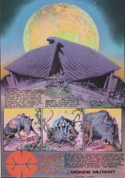 remarques: | 1/ préface du scénariste: Jan Strnad veut mettre en reflet l'effet chaleureux et humanitaire des hommes en la personne de Dimento (?), spécialisé dans les récits se déroulant après l'holocauste mondial 2/ préface du dessinateur: Richard Corben voulait un aspect nouveau différent de Den ou des 1001 nuits 3/ récit après le grand holocauste mondial = la grande bourde Dimento, un homme malheureux continuellement affamé vit dans un monde de cannibalisme, rencontre avec de nombreux survivants qui cherchent à le tromper ainsi qu'avec le père Dove, un prédicateur fou mais puissant, Dimento est pris comme gibier appâté par une jeune fille qui sera par la suite affreusement torturée par ses complices >> p. 34-38 des scènes particulièrement violentes >> p. 39 Dimento commence à éprouver de vrais sentiments >> p. 75 le repas du fauve mais le monde des mutants est surveillé par une équipe temporelle évoluée qui ne doit toutefois pas intervenir dans la réalité, malgré tout, l'un des membres transgressera la règle en récupérant la jeune fille que les savants utiliseront pour repeupler le monde plus sainement, mais le père Dove réduira leur plan au néant >> une histoire d'apocalypse nucléaire sans foi ni loi, mais tout en violence et si le graphisme est encore acceptable, le texte n'est plus très recherché, heureusement le dessin éclipse l'intrigue |