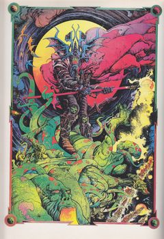 remarques: | English book of 120 pages, partly with color pages - the first comic books were simply bound collections of newspaper strips, the new comics were essentially picture versions of the pulps, a form of escapist litterature popular in the 1920's and 1930's - in the comic book, similar to film technique, the highlights of the action are frozen in separate panels allowing the viewer's imagination to fill in the movement - the best comic book artists are those who have developed their own shorthand or style and it is the power of the pictorial conception rather than the text that should inform the narrative (n.b. but only images do not make a good comic book, text is also important) 1) Will Eisner (1917-2005) - Eisner was the first to apply the principle of cutting between camera angles to the rapidly shifting viewpoints of his own panels with lighting effects such as throwing deep shadows, enshrouding a scene in mist or revealing a face with a lighted match all reflecting a cinematic influence - Eisner was known for his famous characters such as: the Hawk, Dollman, Sheena, Blackhawk, etc with the Spirit however, he created a landmark in the evolution of the comic book remembered above all for its splendid imagery, all his characters were always amusingly human but Eisner excelled in the characterization of this female villains - with the Spirit, Eisner proved that comics were capable of good drama with humour, irony and pathos; he moved away from purely escapist fantasy towards a greater psychological realism illustrations in the book: - strips from the Spirit with the wicked heroïne Silk Satin - 4 pages (including the cover pages with the title integrated in an original design into the picture) with the notorious villainess Sand Saref (1950) - other villainous women were: P'Gell and Plaster of Paris 2/ Harvey Kurtzmann (1924-1993) - Kurtzmann influenced two generations of comic book artists with his humour magazine "Mad comics" in 1952 he revealed a talent for satire and has since parodied every facet of American life he was particularly succesful in exposing the abject materialism of the average consumer - he also started to tell war stories in a more realistic way in "frontal line combat" and "two fisted tales" at E.C. comics, Kurtzmann became more of a writer leaving the artwork to artist like Bill Elder, Jack Davis and Wallace Wood among many others - he created with Robert Crumb the underground comics with "Help", he started also "Little Annie Fanny" 1962 in Playboy - illustrations in this book: - strips from "Pot Shot Pete", sherif of Yucca Pucca Gulch satirizing the singing cowboys of the late 40's (1950) - strips from "front line combat" (1952) - strips from "hey look" (1948) - strips from "two fisted tales" (1952) - strips from "Mad" (1953), "Trump" (1957) and "Help" (1962) 3) Frank Bellamy (1917-1976) - Bellamy was one of the first Englishmen in the comic book field to achieve international recognition his high standards and attention to detail have made him an important influence in European comics - he started 1957 in "Eagle" depicting Winston Churchill's life, then continued with "Dan Dare" - his pictures had an almost photographic realism in 1962, he started his own strip and most acclaimed creation: "Heros, the Spartan", then he did draw "Garth" until his death some other strips were: Frazer of Africa, the shepherd king and Marco Polo - illustrations in this book: - strips from "the happy warrior" (1958) = Winston Churchill's life - Dan Dare (1960) - Heros the Spartan (1972) 4) Richard Corben (1940-2020) one of the most original artists in the comic book medium his first creations were: Fantagor (1970), Rowlf and Den in Metal Hurlant (1975) and Bloodstar (1976) - Corben applied the film story-board technique to the comic book, Corben liked to explore the basic theme of good and evil by recreating traditional myths in other-worldly settings with women always portrayed as sublime sexual creatures, Corben gives a fatalistic outlook on the world, mankind being lustful, greedy, violent and doomed to extinction, the most striking feature of his work is however the colour - illustrations in this book: - strips from Den, Fever dreams, Funny world, Rowlf and Bloodstar 5) Barry Windsor-Smith (1949-) - started with Marvel Comics in 1968, influenced by Jack Kirby and inspired by the decorative world of Art Nouveau, continuing his style with a world of florid ornamentalism and elegant design - he was the first to transpose Howard's legend of Conan the Barbarian into comic book - illustrations in this book: - strips from Conan the Barbarian as well as various posters showing either characters or imageries n.b. a good story of Conan was first published in full-colour Humanoïde in 1976: les clous rouges 6) Jean Giraud (1938-2012) - 2 names: Gir as the professional traditional artist and Moebius being the fantasy science fiction artist commenting whyly on the state of human culture - worked first for "Coeurs Vaillants" (strout hearts), worked also with Jijé on Jerry Spring, as Moebius he started the magazine "Hara Kiri" - Gir created 1963 "lieutenant Blueberry" in Pilote (French version of the West) in a scrupulous detailed and precise graphic style inspired by Remington's classic painting of the Old West - Blueberry is a modern anti-hero, brutal and unwashed whose major virtues are his vulnerability, cynicism and ironic sense of humour - "la déviation" (the detour) produced 1973 marked a turning point in Giraud's fantasy strips, Giraud was also one of the founders of "Métal Hurlant" (heavy Metal) - illustrations in this book: - covers from Métal Hurlant - strips from Blueberry (Fort Navajo) - posters of Chihuahua Pearl and Arzach - strips from the "la déviation" 7) Philippe Druillet (1944-) - companion of Giraud as two of the partners in an artist-run company, called "Humanoïdes Associés" - while Giraud is an insolent, subtle a nd ironic artist, Druillet is a tragic poet 
