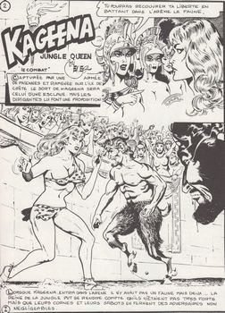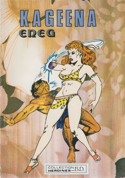 remarques: | les aventures de Kageena, la tarzane érotique par Gene Bilbrew alias Eneg (1923-1974), peu d'ouvrages connus dont: la princesse Elaine, madame la bondage, talons aiguilles dans le cosmos les aventures de Kageena, la belle souveraine sauvage de la jungle qui n'aime pas les blancs au bâton de mort quelques épisodes avec Kageena dont: - capturée par une armée de païennes, Kageena doit se battre dans l'arène pour recouvrer sa liberté - la danse de dum-dum avec les grands singes + quelques épisodes avec d'autres filles: - la femme de Mars qui combat une terrienne - la captive du camp U-69 (2 épisodes) - mythical Mayhem (combat mythologique) entre une amazone et un centaure - red justice, une femme peau-rouge contre un cow boy ivre - gaucho gals (combat au fouet entre deux femmes) - slave ship (des femmes esclaves qui se battent entre elles) >> un texte très pauvre et un graphisme qui ne montre pratiquement que des combats corps à corps n.b. des combats à la Stanton >>> voir le titre Phyllis dans albums érotiques français |