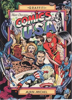 remarques: | petit exposé sur la bande dessinée américaine, d'abord avec les comic strips, puis avec les comic books reprenant des histoires déjà parues dans les quotidiens et les journeaux du dimanche ou consistant d'oeuvres originales premier numéro en 1937 de comic book par DC (detective comics) et par AC (action comics), à l'origine de la réussite de DC, on trouve Superman et Batman puis apparaîtront les personnages de Marvel comics dont captain Marvel (qui sera l'objet d'un procès pour avoir plagié Superman), 1/ the Spirit par Will Eisner dès la fin de 1945 au début de 1951, le Spirit vécu la partie la plus folle de sa carrière dans la ville de Central City contre son adversaire principal: mr. Octopus 2/ sang ou horreur, censeurs protégez nos enfants le courant horreur dès 1942 sous la plume de Gaines et Feldstein, publié dans EC (Educational comics!) avec the vault, the haunt and the crypt ainsi que weird fantasy, Superduperman et Flesh garden par Wallace Wood et ce furent aussi Mad et Crimesuspenstories mais introduction du Comics Code Authority 3/ Stan Lee et les Marvel Comics création de Marvel mystery comics et la Justice League of America avec les personanges the Fantastic Four, captain America, submariner, the human torch, plastic man, the surfer, spiderman en grande partie dessinés par Jack Kirby >> p. 49 couverture de la revue "the haunt of fear" 4/ l'autre face du miroir les aventures de guerre: frontline combat, two fisted tales, etc principalement dessinées par Joe Kubert début de strange adventures avec the Flash et Adam Strange par Carmine Infantino et aussi mystery in space avec the Atom par Gil Kane, doctor Strange, blue beetle, the creeper par Steve Dilko, Conan par Barry Smith 5/ des rêves en noir et blanc début des underground comics avec Witzend, monster world, shock illustrated 6/ la chronologie des comics USA en fin d'album, extrait comme suit: 1933, funnies on parade 1934, famous funnies 1935, adventure comics 1936, popular comics 1937, detective comics 1938, action comics 1939, Marvel comics, DC superman 1940, planet comics, whiz comics, origin of captain Marvel (the Spirit, Batman, all star comics, human torch) 1941, captain America, Rangers comics 1942, sensation comics, wonder woman, 1944, miss America 1945, picture stories 1946, Blonde Phantom, EC comics 1947, international comics, the moon girl 1948, crime patrol, murder inc., Venus goddess of love 1949, love adventures, superboy 1950, the vault of horror, crypt of terror, weird fantasy, haunt of fear, crime suspenstories two fisted tales, gunfighter, weird science 1951, mystery in space, strange tales, frontline combat 1952, star-spangled comics, Mad, 1954, seduction of the innocent, 1955, aces high, shock illustrated, impact 1956, house of secrets 1957, G.I. combat 1958, famous monsters, 1959, tales to astonish, Flash 1960, green lantern, justice league of America, Konga 1961, amazing adventures, the fantastic four 1962, the hulk, the atom, adult fantasy 1963, the amazing spider-man, the avengers, the X-men 1964, creepy, daredevil, hawkman, blue beetle 1965, strange suspense stories 1966, the mighty Thor, Flash Gordon, the Spirit, Vampirella 1967, Witzend, 1968, the incredible hulk, iron man, captain America, Nick Fury agent of shield, his name is savage, silver surfer, 1970, Conan the barbarian 1971, blackmark, savage tales, commentaires de l'éditeur livre comics USA dans la collection "graffiti" = inscriptions ou dessins tracés sur les murailles ou autres surfaces les quatre fantastiques, le surfer d'argent, l'homme araignée, Venus de l'autre côté de l'Atlantique, ces personnages aux noms énigmatiques et aux pouvoirs extravagants ont conquis en France en quelques années, un nombre impressionnant de lecteurs fanatiques, qui guettent sans répit la parution de nouvelles histoires et qui se procurent par le troc ou l'achat dans des officines spécialisées celles qu'ils ont par malheur manquées, malgré la censure qui les a un temps poursuivis, malgré une forme d'édition qui semble les réserver au public le plus jeune, les héros des comic books américains font maintenant la nique aux vedettes en place de la bande dessinée d'expression française aux USA, leur importance n'est plus à démontrer, héritiers d'une tradition qui a son origine dans les années trente avec la naissance de Superman et de Batman, ils sont les héros les plus populaires de la jeunesse américaine et ont gagné depuis longtemps leur place sur les campus et dans les programmes d'étude des universités |