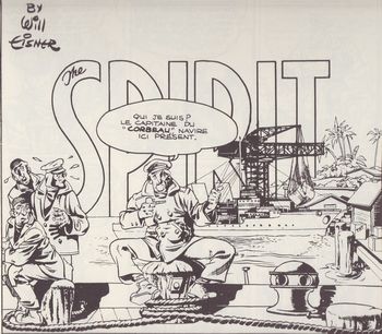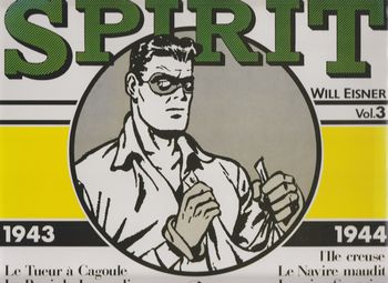remarques: | volume 3 1943-1944 avec 7 épisodes: le tueur à cagoule, la rani de Jarawadi, le sérum de vérité, l'île creuse, le navire maudit, invasion surprise et les pirates de la radio n.b. ces titres sont mentionnés sur la jaquette de couverture mais l'île creuse et invasion surprise ne sont plus relevés sur le résumé de la 1ère page avec ce troisième volume s'achève la série des bandes quotidiennes originellement publiées dans la presse américaine entre 1941 et mars 1944, ainsi le collectionneur aura la satisfaction de posséder l'intégrale des "strips" dans ce troisième volume, on est en pleine période de guerre et les usines à rêves américaines se métamorphosent, le Spirit y ajoutera sa part en combattant les ennemis, plus particulièrement les nazis 1/ bandes quotidiennes du 11 octobre 1943 au 11 mars 1944 a) le tueur à cagoule le Spirit aura affaire au tueur à la cagoule et le maire de Central City, en plus du commissaire Dolan et du Spirit, va engager un détective spécial: John Humphreys, le Spirit doit alors se surpasser et élabore un plan bien imaginé avec Ebony White comme appât n.b. à la vignette 10-30, les strips passent de 3 bandes par page à seulement 2 bandes par page avec des vignettes agrandies mais tel est pris qui croyait prendre, le Spirit est capturé et ses adversaires le font passer maintenant pour le tueur à la cagoule, finalement le Spirit réussira à s'en sortir et à faire éclater la vérité: c'est le détective spécial John Humphreys qui est en fait le tueur à la cagoule! b) la rani de Jarawadi en visite à Central City, la rani se fait voler ses bijoux et ce sera le Spirit qui mènera l'enquête qui le conduira à démasquer une bande d'escrocs qui se font passer pour la rani de Jarawadi et son entourage c) le sérum de vérité un petit bonhomme a inventé le sérum de vérité pour faire parler les criminels et enlever leurs inhibitions à chaque individu et ce sera Ellen Dolan qui s'empare du sérum de vérité pour l'utiliser sur le Spirit afin que celui-ci lui avoue son amour, mais le sérum n'agit que sur une très courte période 2/ deux épisodes parus comme suppléments du dimanche du 16 février 1941 au 12 avril 1942 et comportant chacun un exemple de logo-titre du Spirit a) les pirates de la radio une affaire d'espionnage, le Spirit en lutte contre une cinquième colonne nazie dont les membres veulent s'emparer de la station radio WLXK pour l'utiliser comme instrument de propagande b) le navire maudit le navire maudit "le corbeau" qui devient un tueur en coulant d'autres navires, en fin d'album, il s'attaquera à son vieil ennemi "le transatlantique" et à un navire de guerre ennemi, le Spirit neutralisera le navire de guerre, puis s'emparera du navire maudit en le ramenant à son port d'attache >> des aventures assez amusantes mais sans réel intérêt, mi-dramatiques et mi-humoristiques, à noter toutefois que les suppléments du dimanche sont mieux dessinés que les bandes quotidiennes annexes - couverture du volume 3 - 4ème plat du volume 3 - les deux logo-titres pour les épisodes parus dans les suppléments du dimanche |