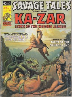 remarques: | no 11 of Savage Tales featuring Ka-Zar, July 1975, cover Mike Whelan 1/ Ka-Zar, marauder in a cage of time by Doug Moench and Steve Gan 2/ tales of the savage land, intruder! by Archie Goodwin and Russ Heath |