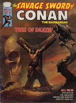 remarques: | Savage Sword no 5, serie 2929, April 1975 cover by Boris Vallejo 1/ a witch shall be born Taramis queen of Khauran against hr sister, the witch Salome by Roy Thomas and John Buscema part 2, a people betrayed part 3, the tree of death part 4, a letter to Nemedia part 5, and dwell in darkness part 6, wolves of the desert part 7, the voice in the crystal part 8, the shadow from the temple 2/ kingdoms and caravans: a look at trade routes in the Hyborian Age 3/ the Kline Conan, a portfolio by Robert Kline |