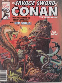 remarques: | Savage Sword no 29, serie 2929, May 1978 cover Ernie Chan 1/ Conan, child of sorcery by Roy Thomas and Ernie Chan, first story illustrated by Ernie Chan who will become Conan's artist by excellence 2/ Conan's ladies by various artists: Bêlit, Yasmina, Valeria, the frost-giant's daughter, Salome and Red Sonja 3/ Red Sonja, the wizard and Red Sonja show story and art by Frank Thorne |
