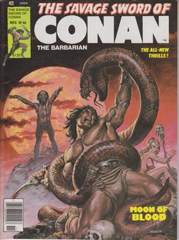remarques: | Savage Sword no 46, serie 2929, November 1979 cover Earl Norem 1/ Conan, moon of blood >> p. 14 a savage Pictish by Roy Thomas and Ernie Colon+Tony Dezuniga 2/ this sword for hire, a tale of the Hyborian Age by Don Glut and Hal Santiago |