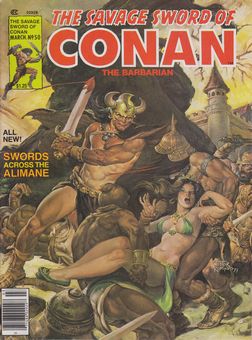remarques: | Savage Sword no 50, serie 2929, March 1980 coverNestor Redondo 1/ Conan, swords across the Alimane by Roy Thomas and John Buscema+Tony Dezuniga 2/ Conan at fifty (Savage Sword no 50) a retrospective look by a nameless editor |