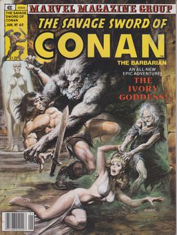 remarques: | Savage Sword no 60, serie 2929, January 1981 cover Earl Norem 1/ Conan, the ivory goddess by Roy Thomas and John Buscema+Danny Bulanadi n.b. no 60 is the last issue whose script is done by Roy Thomas who had left Marvel Comics, Michael Fleisher would replace Roy Thomas and readers by the time would consider Michael Fleisher as good as Roy Thomas 2/ Conan of the storyboards by Mike W. Barr and Art by Neal Adams n.b. storyboards = frame-by-frame breakdowns of a sequence of a movie script made by an artist to aid the director in his conception of the sequence made for every film whether they are ever seen by the general public or not |