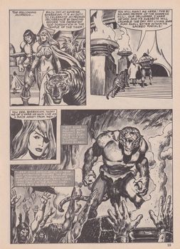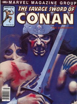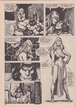remarques: | Savage Sword no 62, serie 2929, March 1981 cover David Mattingly 1/ Conan, the temple of the tiger, Conan becomes a prisoner of queen Sahriana and her obedient warrior-women including their tamed tigers worshipers of the tiger-god by Michael Fleisher and John Buscema+Ernie Chan n.b. this is one of the first well-drawn stories of penciller Ernie Chan who demonstrates here his great drawing talent 2/ Solomon Kane, the one black stain based on the real story of sir Thomas Doughty, executed at St. Julian's Bay 1578 by Robert E. Howard, art by David Wenzel Information Thomas Doughty (1545 – 2 July 1578) was an English nobleman, soldier, scholar and personal secretary of Christopher Hatton, his association with Francis Drake, on a 1577 voyage to interfere with Spanish treasure fleets, ended in a shipboard trial for treason and witchcraft and Doughty's execution. although some scholars doubt the validity of the charges, and question Drake's authority to try and execute Doughty, the incident set an important precedent: according to a history of the English Navy, titled to Rule the Waves: how the British Navy shaped the modern World by Arthur Herman, Doughty's execution established the idea that a ship's captain was its absolute ruler, regardless of the rank or social class of its passengers |