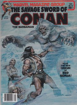 remarques: | Savage Sword no 78, serie 2929, July 1982 cover Earl Norem 1/ Conan, demons of the firelight, part 1 by Michael Fleisher and Ernie Chan 2/ Red Sonja, she-devil with a sword, the day of the sword (the origin of Red Sonja) by Doug Moench and Dick Giordano 3/ island of pirates' doom, part 5 by Roy Thomas and John Buscema |