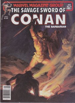 remarques: | Savage Sword no 79, serie 2929, August 1982 cover Joe Chiodo 1/ Conan, demons of the firelight, part 2 by Michael Fleisher and Ernie Chan 2/ Emmanuel Cody = Bront, in the halls of Shilme by Bruce Jones and John Buscema 3/ island of pirates' doom, part 6 by Roy Thomas and John Buscema n.b. unfortunately, the adventures of Conan are now shortened on account of other short stories less interesting only the drawing of Ernie Chan makes these newly drafted issues still interesting |
