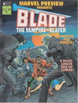 remarques: | Blade (Eric Brooks) is a fictional character appearing in American comic books published by Marvel Comics, created by writer Marv Wolfman and penciller Gene Colan, his first appearance was in the comic book the Tomb of Dracula #10 (July 1973) as a supporting character Marvel Preview no 3, serie 2928, september 1975 cover Gray Morrow 1/ Blade the vampire-slayer, the night Josie Harper died by Chris Claremont and Tony Dezuniga+Rico Rival chapter one in the four-part saga of Blade's war with the legion of the undead chapter 2: trail of blood, trail of tears chapter 3: dawn of blood chapter 4: hellmorn 2/ Blade: a picto-history by Scott Edelman |