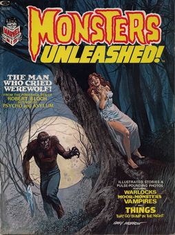 remarques: | a serie of 11 issues from August 1973 to April 1975, black and white, 76 pages, 75 cents only the 5 first issues are collected here with the logo Marvel Monster Group on the cover Monsters unleashed no 1, serie 2188, 1973 cover Gray Morrow 1/ the man who cried Werewolf the man becoming a wolf by Gerry Conway and Pablo Marcos 2/ the thing in the freezer 3/ vampire tale 4/ Solomon Kane, skulls in the stars by Roy Thomas and Ralh Reese 5/ portrait of a werewolf by Tony Isabella 6/ one foot in the grave 7/ the fake 8/ world of warlocks by Roy Thomas and Gene Colan Information the first publication titled Monsters Unleashed was an American black-and-white horror comics magazine published by Magazine Management, a corporate sibling of Marvel Comics, the series ran 11 issues cover-dated 1973 to April 1975 plus one annual publication, with sister titles including Dracula Lives, Tales of the Zombie and Vampire Tales, it was published by Marvel Comics' parent company, Magazine Management and related corporations, under the brand emblem Marvel Monster Group, the first issue was dated simply 1973, but the second issue of the magazine, published quarterly, was cover-dated September 1973 a magazine rather than a comic book, it did not fall under the purview of the comics industry's self-censorship Comics Code Authority, allowing the title to feature stronger content — such as moderate profanity, partial nudity, and more graphic violence — than color comics of the time Monsters Unleashed primarily featured standalone horror stories, both original and reprinted, including from pre-comics Code comics from Marvel Comics' 1950s iteration (new version), Atlas Comics occasionally featured stories starring the Marvel Comics swamp monster Man-Thing, the Marvel version of the Frankenstein monster, the bestial Wendigo, the science-fiction adventurer Gullivar Jones and the superheroine Tigra, it also included text features on monster movies Monsters Unleashed was edited by Roy Thomas for the first six issues, succeeded by Tony Isabella, and then Don McGregor for the last two issues, the painted covers were illustrated by the likes of Gray Morrow, Boris Vallejo, Neal Adams, Frank Brunner, Bob Larkin, Richard Hescox, Earl Norem, and Jose Antonio Domingo in addition to the 11 issues there was one annual publication in 1975 consisting completely of stories reprinted from the magazine |