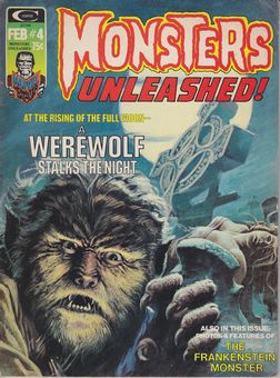 remarques: | Monsters Unleashed no 4, serie 2188, Februar 1974 cover not mentioned 1/ Frankenstein 1973, chapter 2 the classic monster by Gary Friedrich and John Buscema 2/ the hands who can hold a fire in his hand? Gary Birch by Gene Colan 3/ our Martian heritage, an excursion into fantasy 4/ Gullivar Jones, warrior of Mars "web of hate" by Tony Isabella and Dave Cockrum >> notes on Gullivar Jones who first appeared in "Creatures on the loose" no 16 (1972) 5/ a monster reborn (during a Jewish sabbath) by Steve Gerber and Pablo Marcos 6/ monsters' makers in movies 7/ the killers mankind versus nature gone mad 8/ to love, honor, cherish til death do us part by Chris Claremont and Don Perlin |