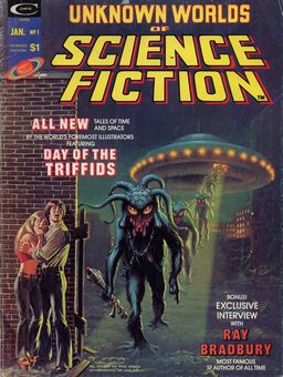 remarques: | the black-and-white, science fiction comics magazine Unknown Worlds of Science Fiction ran six bimonthly issues (cover-dated Jan.-Nov. 1975), plus one annual publication, Unknown Worlds Of Science Fiction Giant Size Special #1 (1976) n.b. this annual publication not collected here Unknown worlds of Science-Fiction no 1, serie 2938, January 1978, cover John Romita issue based mainly on the power of the slow glass concept created by Bob Shaw 1/ slow glass by Tony Isabella and Gene Colan 2/ the day of the Triffids, chapter one a world invaded by plans rendering people blind by Gerry Conway and Ross Andru+Ernie Chua + chapters two and three 3/ a view from without story and art by Neal Adams 4/ the Bradbury chronicles, the author of Fahrenheit 451 the first of a series of exclusive interviews with SF greats 5/ smash Gordon a funny thing happened on the way to Mongo story and art by Frank Brunner 6/ savage world by scripter Wally Wood and artist Al Williamson 7/ hey buddy, can you lend me a.. four people trapped in a world they never made story and art by Mike Kalluta 8/ light of other days by Tony Isabella and Gene Colan+ Mike Esposito Information A/ Slow glass "light of other days" is a science fiction short story by Bob Shaw, it was originally published in August 1966 in Analog Science Fiction and Fact, it was shortlisted for the Hugo Award of SF for Best Short Story in 1967, the story uses the idea of "slow glass": glass through which light takes years to pass, Bob Shaw used this idea again in later stories, published by Marvel travelling through a remote area they find a place that sells panes of slow glass, this is glass that light takes a long time to pass through, even years, so that a panel of this glass can show a scene from the past, People were buying slow glass that has been placed in picturesque scenery so that later they can enjoy the view in their homes or workplaces. the best quality slow glass is priced by its "thickness", corresponding to the number of years of scenic view contained within it B/ unknown worlds of science fiction the black-and-white, science fiction comics magazine Unknown Worlds of Science Fiction ran six bimonthly issues (cover-dated Jan.-Nov. 1975), plus one annual publication, Unknown Worlds Of Science Fiction Giant Size Special #1 (1976), it was published by Magazine Management, at the time the parent company of Marvel Comics, and was cover-branded with the logo of its distributor, Curtis Circulation, utilizing many Marvel writers and artists, as well as other creators, it was launched following the cancellation of Marvel's 1973-74 comic book SF anthology Worlds Unknown. a framing device throughout the series featured an old curio dealer who presented his shop's visitors with dramas captured in "slow glass", a concept that series editor Roy Thomas and writer Tony Isabella credited in the magazine to writer Bob Shaw the premiere issue featured both new material and a number of reprints from fanzines and alternative comics of the era: - writer-artist Neal Adams' "a View from Without...", from Phase #1 (1971); - "Smash Gordon, in a funny Thing happened on the way to Mongo'" by writer-artist Frank Brunner, from Heritage #1a (1972); - "Savage World", by writer Wally Wood, pencilers Al Williamson+ Angelo Torres and Roy Krenkel, inkers Williamson, Torres, and Frank Frazetta, from witzend #1 (1966); - and "hey Buddy, can you lend me a...", by writer-artist Michael Kaluta, from Scream Door (Asian Flu) #1 (1971 in addition to the "slow glass" sequences by writer Isabella and penciler Gene Colan, original material included part one of a two-issue adaptation of John Wyndham's novel "the day of the Triffids", by writer Gerry Conway+penciler Ross Andru; as well as an adaptation by Isabella and Colan of Shaw's original "slow glass" with short story "Light of other days" comics historian Richard J. Arndt believes the "Triffids" adaptation was originally scheduled for Worlds Unknown #7-8, the final issues, which had instead deviated from SF adaptations to adapt the contemporaneous film the golden voyage of Sinbad (1974), Arndt also notes, "the Savage World story’s art" was done in 1954 for Buster Crabbe Comics but it was unused, in 1966 Wally Wood wrote a new script (the original had been lost) for the artwork |