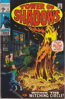 remarques: | Tower of Shadows no 4, serie 2124, March 1970 1/ evil is a baaaad scene!! a phantasmagorical little fable by Allyn Brodsky and Don Heck 2/ one little Indian written under a full moon by Marvin Wolfman and illustrated at the crack of the dawn by Gene Colan 3/ to sneak... perchance to scream a slightly satirical stunner by Stan Lee and Tom Sutton n.b. perchance = perhaps or by some chance |
