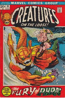 remarques: | Creatures on the loose no 18, serie 2480, July 1972 1/ Gullivar Jones, wasteland on a weirdling world by George Effinger and Russ Andru 2/ under the knife, a weird adventure into terror 3/ what lurks in the mountain by Steve Ditko |
