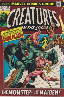 remarques: | Creatures on the loose no 20, serie 2480, November 1972 1/ Gullivar Jones, what price victory by Alec Effinger and Gray Morrow 2/ only one is human 3/ for whom the drum beats |