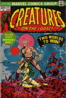remarques: | Creatures on the loose no 21, serie 2480, January 1973, last issue, continues with the title Thongor at no 22 1/ Gullivar Jones, two worlds to win by Alec Effinger and Gray Morrow 2/ I was a prisoner of the Martians 3/ the green thing by Stan Lee and Larry Lieber |