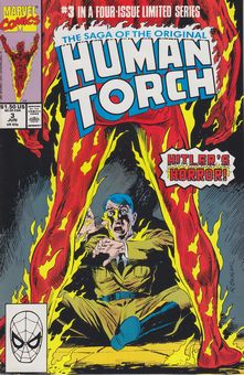 remarques: | Human Torch no 3, June 1990 1/ out of the ashes by Roy Thomas and Rich Buckler Human Torch and Toro have the task to capture Adolf Hitler and Eva Braun alive but they will not succeed and afterwards will concentrate on the Japanese armies, espc. the kamikaze fighters together with Captain America |