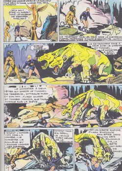 remarques: | petit album format 16/22 couleur, no 93, 4ème trimestre 1980, avec une préface commentant le film de Dino de Laurentiis (1980) tiré de la série de Flash Gordon c'est le début des aventures de Flash Gordon qui arrive à Mongo, capitale du tyran Ming et de la princesse Aura, aventures de Flash Gordon sur la planète Mongo a) chez la cité des hommes-lions avec leur prince Thun b) dans la cité aquatique du roi Kala, allié de Ming c) chez Arboria, la cité forestière du roi Barin (avec les hommes-singes et les hommes-bleus) d) et finalement Flash arrivera dans la cité aérienne des hommes-volants du roi Vultan qui veut épouser Dale >> petit album bien conçu avec le début colorié des aventures de Flash Gordon, du dr. Zarkov et de Dale Arden en 1934, roman de chevalerie à la science-fiction, le parfait space-opera et les aventures amoureuses de Flash et sa chérie Dale annexes - couverture de l'album - première planche de Flah Gordon - un monstre préhistorique Information ces aventures seront repris en N&B dans le tome 1 de Futuropolis Copyright >> voir ce titre |