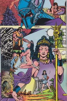 remarques: | Wonder Woman, fantastic 1st issue, 1986 (February 1987) 1/ the princess and the power mount Olympus 1,200 BC, the origin of wonder woman created by Charles Moulton script by Greg Potter and design by George Perez n.b. William Moulton Marston (9.5.1893 - 2.5.1947), also known by the pen name Charles Moulton was an American psychologist, inventor of an early prototype of the lie detector, self-help author, and comic book writer who created the character Wonder Woman two women, his wife Elizabeth Holloway Marston and partner Olive Byrne, both greatly influenced Wonder Woman's creation Enclosures - front cover first issue 1986 - back cover first issue Information a) DC Comics see wonder woman savage moon b) Wonder Woman Wonder Woman is a fictional superhero appearing in American comic books published by DC Comics the character is a founding member of the Justice League, goddess, and Ambassador-at-Large of the Amazon people, the character first appeared in All Star Comics #8 in October 1941 and first cover-dated on Sensation Comics #1, January 1942, in her homeland, the island nation of Themyscira, her official title is Princess Diana of Themyscira, daughter of Hippolyta, when blending into the society outside of her homeland, she adopts her civilian identity Diana Prince, the character is also referred to by such epithets as the "Amazing Amazon", the "Spirit of Truth", "Themyscira's Champion", the "God-killer", and the "Goddess of Love and War". Wonder Woman was created by the American psychologist and writer William Moulton Marston (pen name: Charles Moulton), and artist Harry G. Peter, Olive Byrne, Marston's lover, and his wife, Elizabeth, are credited as being his inspiration for the character's appearance. Marston drew a great deal of inspiration from early feminists, and especially from birth control pioneer Margaret Sanger, in particular, her piece "Woman and the New Race" the Wonder Woman title has been published by DC Comics almost continuously except for a brief hiatus in 1986 Wonder Woman's origin story relates that she was sculpted from clay by her mother Queen Hippolyta and given life by Aphrodite, along with superhuman powers as gifts by the Greek gods, in recent years, DC changed her background with the revelation that she is the daughter of Zeus and Hippolyta, jointly raised by her mother and her aunts Antiope and Menalippe in the 1980s artist George Perez gave her a muscular look and emphasized her Amazonian heritage, Wonder Woman's Amazonian training helped to develop a wide range of extraordinary skills in tactics, hunting, and combat, she possesses an arsenal of advanced technology, including the Lasso of Truth, a pair of indestructible bracelets, a tiara which serves as a projectile, and, in older stories, a range of devices based on Amazon technology Wonder Woman's character was created during World War II; the character in the story was initially depicted fighting Axis military forces as well as an assortment of colorful supervillains, although over time her stories came to place greater emphasis on characters, deities, and monsters from Greek mythology, many stories depicted Wonder Woman rescuing herself from bondage, which defeated the "damsels in distress" trope that was common in comics during the 1940s n.b. trope = a figurative or metaphorical use of a word or expression in the decades since her debut, Wonder Woman has gained a cast of enemies bent on eliminating the Amazon, including classic villains such as Ares, Cheetah, Doctor Poison, Circe, Doctor Psycho, and Giganta, along with more recent adversaries such as Veronica Cale and the First Born Wonder Woman has also regularly appeared in comic books featuring the superhero teams Justice Society (from 1941) and Justice League (from 1960) the character is a well-known figure in popular culture that has been adapted to various media, notable depictions of the character in other media include Gloria Steinem placing the character on the cover of the second edition of Ms. magazine in 1971; the 1975–1979 Wonder Woman TV series starring Lynda Carter; as well as animated series such as the Super Friends and Justice League, since Carter's television series, studios struggled to introduce a new live-action Wonder Woman to audiences, although the character continued to feature in a variety of toys and merchandise, as well as animated adaptations of DC properties, including a direct-to-DVD animated feature starring Keri Russell attempts to return Wonder Woman to television have included a television pilot for NBC in 2011,[ closely followed by another stalled production for The CW Gal Gadot portrays Wonder Woman in the DC Extended Universe, starting with the 2016 film Batman v Superman: Dawn of Justice, marking the character's first appearance in a feature film in its 75-year history, Gadot also starred in the character's first solo live-action film Wonder Woman, which was released on June 2, 2017 |
