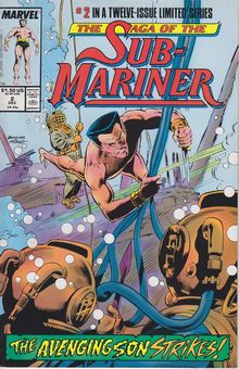 remarques: | the saga of the Sub-Mariner no 2, December 1988 the avenging son strikes by Roy Thomas and Rich Buckler n.b. note the decrease in quality for color and design of this no with the issue no 71 of July 1974, what a difference! and the title no longer mentions "the savage Sub-Mariner" |