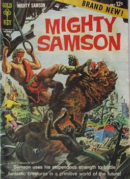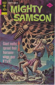 remarques: | Mighty Samson was a comic book serie published by Gold Key Comics, a post-apocalyptic adventure (beyond the nuclear age), it was set in the area around New York City, now known as "N'Yark", in an earth devastated by a nuclear war, the series was created by writer Otto Binder and artist Frank Thorne >> this issue collected here as a representative sample of the serie Mighty Samson No. 31, a color issue dated March 1976 giant moths spread their fearsome wings over N'Yark >> a serie of little walue both for script and design Enclosures - cover no 31 - cover no 1 first issue Information Mighty Samson ran 32 issues between 1964 and 1982, its initial run lasted 20 issue (cover-dated July 1964 - 1969), issues #7–20 each had a back-up story with the large-headed character Tom Morrow, Mighty Samson returned in 1972 with issue #21 and ran through #31 in 1976, the first two issues of the revival reprinted #7 and #2, respectively issues #1 through #6 featured art by Frank Thorne, most well-known for illustrating Marvel Comics' adaptation of Robert E. Howard's Red Sonja in the 1970s, artist Jack Sparling took over the artwork with #8, and Binder together with Sparling did the title through #20, in the new issues beginning with #23, art was by José Delbo, and later by Jack Abel, most covers were fully painted by Morris Gollub, other were generally by George Wilson Western Printing and Lithographing, which owns Gold Key, left the comic-book business in 1984, a few years later, some of its properties, such as Doctor Solar and Turok, son of stone, were picked up by Valiant Comics, though Samson was not in 2010, Dark Horse Comics began publishing the first of four hardcover archives, each reprinting several issues of the original series in one place for the first time |