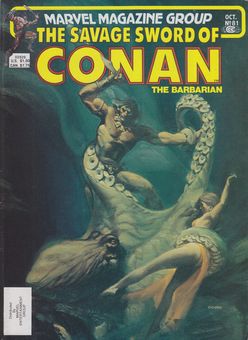 remarques: | Savage Sword No. 81, serie 2929, October 1982 cover Joe Chiodo 1/ Conan, the palace of pleasure by Michael Fleisher and Ernie Chan 2/ Emmanuel Cody = Bront come into my parlor by Bruce Jones and John Buscema |