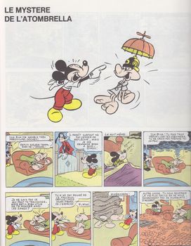 remarques: | la suite des aventures de Eega Beeva et dernier album de la série a) le kumquat adéquat (1948) Eega Beeva devient malade par manque de kumquats (mais pas n'importe lesquels: des kumquats "marinés"), les inventions saugrenues de Eega Beeva qui peut deviner l'avenir b) le mystère de l'atombrella (1948) Eega invente l'atombrella = la meilleure protection contre la bombe atomique >> p. 19 le garde du corps de Mickey et Eega l'espion qui parle en vers (Alex Andrin) s'empare de l'invention, c'est alors une poursuite après l'espion qui se révèle être lui aussi un robot extraterrestre >> la continuation et la fin des aventures de Eega Beeva avec Mickey et Dingo, aventures parues dans Mickey Magazine du 5.4. au 8.5.1948 pour le premier épisode et du 10.5. au 9.10.1948 pour le deuxième, des aventures dans la lignée du premier tome mais le graphisme dans Mickey Magazine était meilleur et d'autres récits parus dans Mickey Magazine encore plus intéressants, tel celui de "la planète inconnue" en 1954 n'ont malheureusement jamais été édités en albums |