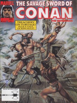 remarques: | Savage Sword no 199, serie 2929, July 1992 cover Ovi 1/ Conan, treachery on Tortage by Roy Thomas and Ernie Chan 2/ Kull of Atlantis, the pit by Roy Thomas and E.R. Cruz |