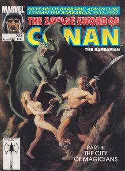 remarques: | Savage Sword no 204, December 1992 cover Alan Rabinowitz 1/ Conan, drums and death out of Tombalku Conan in the city of magicians part 3) by Roy Thomas and Ernie Chan 2/ Conan, murderer's grog by Roy Thomas and Ovi Hondru |