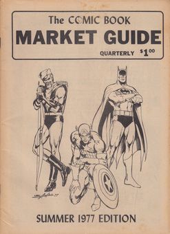 remarques: | the market guide with prices stated in dollars, summer 1977 edition, volume one/number one 1/ the Marvel index most expensive one being the Hulk no 1/1962 $ 75.- 2/ the D.C. index most expensive ones being Action Comics no 1/1938 $ 3000.-, Batman no 1/1940 $ 750.-, Detective Comics no 27/1938 with 1st Batman story $ 1600.-, Superman no 1/1939 $ 800.- 3/ the timely-marvel & Atlas index captain America no 1/1941 $ 1000.-, mystery comics no 1/1939 $ 700.- 4/ the E.C. index Weird fantasy no 13/1950 and Mad no 1/1952 with $ 100.- each + tales of terror annual 1951 $ 200.- |
