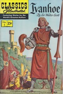 remarques: | according to the novel of sir Walter Scott no 2 (1971) 25 cents, 48 pages England during the reign of Richard the First, the knight Ivanhoe, Cedric the saxon, the beautiful Rowena, Isaac the jew, his wonderful daughter Rebecca, sir Brian of Bois-Guilbert, sir De Bracy, Front-de-Boeuf, Robin Hood, Friar Tuck and the dark Knight, Richard heartened the First >> good story with fine illustrations |