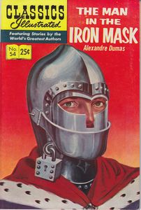 remarques: | according to the novel of Alexandre Dumas no 54 (1969), 25 cents, 48 pages, quite similar to the French edition in 1661, a prisoner learns from the musketeer Aramis that he is actually the twin brother of king Louis XIV and that he was made disappeared from the royal court in order not to sow discord, Aramis suggests a plan to take the place of his brother, but this plan will be foiled by D'Artagnan and fail, the twin brother will be returned to prison with the obligation to wear a visor iron hiding his face >> quite an interesting and famous story of the iron mask whose identity has not yet be found out so far, but if it is a novel, he may never existed although there are rumours about a prisoner with a iron mask at that time |