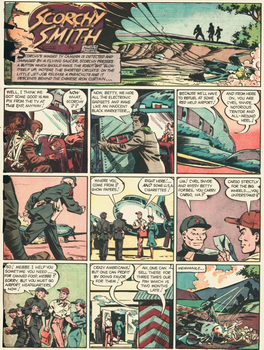 remarques: | Noel (Douglas) Sickles (24.1.1910-3.10.1982) est un illustrateur et auteur de bande dessinée américain, considéré comme l'un des grands maîtres du comic book, Bob l'aviateur, de son titre original Scorchy Smith, est un comic strip d'aventure créé par John Terry et diffusé de 1930 à 1961, le strip raconte les aventures de Scorchy Smith, un pilote d'avion qui est amené à combattre, aux États-Unis, des criminels et à sauver des jeunes femmes, plus tard il parcourra le monde pour combattre des espions et des menaces étrangères préface de Milton Caniff 1/ Noël Sickles ou Bud l'inventeur - sur le langage imagé de Sickles (en anglais parfois difficile à comprendre, voir vignettes p. 5) dont certains personnage, déjà fortement typés grâce au dessin, sont pourvus d'accents spectaculaires et Sickles se révèle être un grand inventeur de formes - Sickles occupe une position essentielle par rapport à la bande dessinée, il n'est pas simple dessinateur de comics qui règle au coup-par-coup des problèmes spécifiques mais aussi un spécialiste des techniques graphiques, qui mettent souvent en scène de l'aviation d'entre-guerre, et capable de résoudre des problèmes techniques (utilisation de trames, lisibilité) et esthétiques (rendre le dessin plus attrayant); on évoquera souvent pour Sickles un dessin impressionniste, en partie émotionnelle 2/ les quatre épisodes qui sont peut'être les mieux réussis de Sickles a) révolution (revolution) du 14.1.1935 au 10.8.1935 b) l'amour et la guerre (about love and war) du 12.8.1935 au 5.10.1935 c) l'or de La Fargue (La Farge's gold) du 7.10.1935 au 30.1.1936 d) New York (New York) du 31.1.1936 au 18.3.1936 >> des scénarios et des dessins parfois très intéressant dont surtout l'épisode l'amour et la guerre qui rappelle en quelque sorte le graphisme de Pratt dans "scorpions du désert" annexes - couverture 1er et 4ème plat de l'album - le portrait de Scorchy Smith - une planche couleur - l'art de Noël Sickles - une planche de l'art de Noël Sickles Information Noel Douglas Sickles est né à Chillicothe dans l'Ohio en 1910, il commence sa carrière dans la bande dessinée en 1933 à l'âge de 26 ans, son style spécifique de dessin à l'encre donne à ses illustrations un grand réalisme, à la fin des années 1920, il rencontre Milton Caniff, l'auteur de Terry et les Pirates, avec qui il collabore et partage un atelier, Caniff sera fortement influencé par le style noir et blanc de Sickles Sickles est surtout connu pour son travail sur le personnage de Bob l'aviateur (Scorchy Smith), il reprend cette série créée par John Terry en 1933 et la poursuivra jusqu'en 1936 Sickles abandonne ensuite la bande dessinée pour devenir l'un des grands illustrateurs de magazines et de livres de sa génération, il a notamment travaillé pour Life, le Saturday Evening Post et le Reader's Digest Bob l'aviateur, de son titre original Scorchy Smith, était un comic strip d'aventure créé par John Terry et diffusé de 1930 à 1961 |