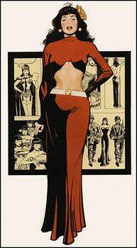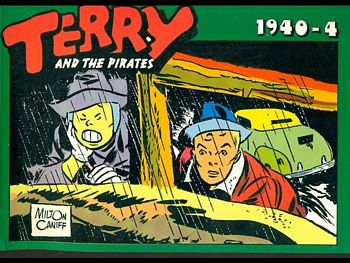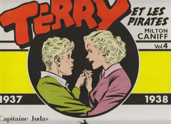 remarques: | dans la collection Copyright Futuropolis, volume 4 1927-1938 avec deux épisodes dont le graphisme s'améliore nettement tout comme le scénario, qui bien que racontant toujours un peu les mêmes tribulations, devient assez intéressant, d'ailleurs ces trois derniers albums de Futuropolis contiennent probablement les meilleures bandes de Terry et les pirates 1/ capitaine Judas, 18.10.1937 au 21.12.1937 Pat constate que le chef des ravisseurs n'est en fait pas le capitaine Judas mais Burma s'enfuit et tombe, elle, sur le vrai capitaine Judas qui non seulement garde Burma prisonnière mais capture aussi Terry et Connie qui sont embarqués dans un engin sous-marin tandis que l'on n'entend plus parler de Pat Ryan resté sur terre 2/ général Klang, du 22.12.1937 au 30.1.1938 après s'être débarrassé de Judas, le trio Terry, Connie et Burma viennent de se souvenir que c'était le jour de Noël, toutefois ils arrivent désarmés dans une contrée inconnue (toujours en l'absence de Pat Ryan) c'est alors qu'ils tombent sur un nouvel adversaire, le général Klang qui retient prisonniers Terry et Connie et qui s'amourache de Burma, Klang projette de divertir ses hommes en torturant Connie et il réserve Burma pour son plaisir personnel Terry réussit à s'enfuir tandis que Burma soigne une femme étrange 3/ Dragon Lady, 31.1.1938 au 12.3.1938 la femme soignée par Burma se révèle être Dragon Lady que la bande de Klang croyait morte, Dragon Lady intervient alors et appelle ses hommes à la rescousse coup de théâtre avec l'arrivée de Terry au volant d'un char d'assaut, tout le monde prend la poudre d'escampette, toutefois afin de regagner l'autorité sur ses hommes, Dragon Lady trahit le groupe de Terry >> un des meilleurs épisodes de la série annexes - couverture 1er et 4ème plat du volume 4 - quelques planches de Terry et les pirates - portrait d'une belle inconnue |