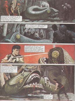 remarques: | album publié en 1983 par Oberon B.V. Holland nouvelles aventures sur la planète Pandarve où Storm et Redhair sont aspirés depuis la Terre par un mystérieux rayon, appelé l'anomalie >> p. 11 l'harponnage d'une baleine spatiale >> p. 14 les dieux sont toujours sourds sur leur trajet, ils rencontrent Rann le chasseur de baleines, mais Storm est séparé de Redhair qui, elle, tombe dans les mains de Mardock, le magnifique, seigneur de Pandarve qui veut devenir le maître des mondes avec la maîtrise de l'espace et du temps, il garde Redhair comme otage pour faire venir Storm dont il veut analyser le physique et qui doit lui apporter de nouvelles connaissances dans son rêve de conquête >> p. 22 Vertiga, la planète des pirates de l'espace Storm est capturé mais refuse de collaborer avec Mardock, il est alors envoyé dans les mines d'eau où il fait la connaissance du rouge Beau-Môme qui devient son compagnon de chaîne, il réussira de s'échapper avec l'aide de Beau-Môme et devient capitaine d'un navire pirate de l'espace >> une série qui commence médiocrement, scénario et graphisme sans grand intérêt, début d'un nouvel épisode avec les chroniques de Pandarve (qui dureront durant cinq albums) et avec deux personnages qui deviennent récurrents: Redfhair et Beau-Môme |